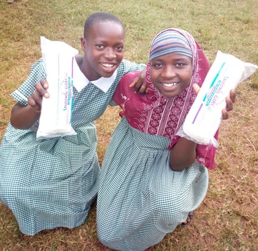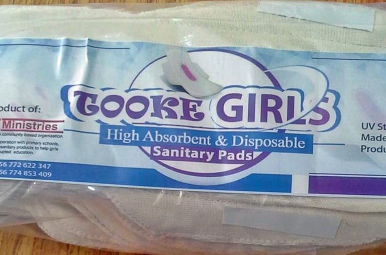 Our pad program is called Tooke Girls. Every month we give each girl in our program a gift packet of 8 disposable sanitary pads.