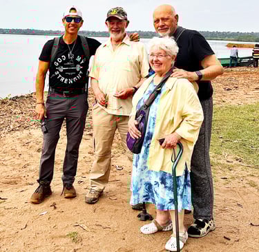 J.R., Chris, George & Diana enjoying the view at Lake Victoria.