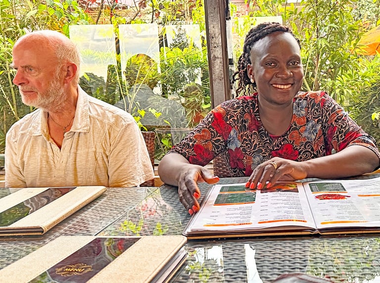 Chris and Edith deciding on what delicious food to order at our favorite restaurant, Colubus.
